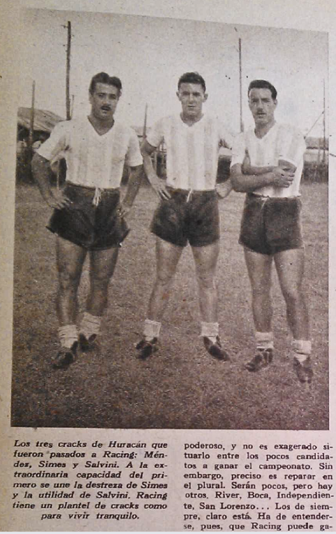 Tras el Campeonato Sudamericano de 1947, disputado en diciembre de aquel año, ya en los primeros números de El Gráfico de enero de 1948 se hablaba del interés y posible contratación de las tres figuras de Huracán. Cabe mencionar que el entrenador del seleccionado argentino, era Guillermo Stábile, quien también ocupaba el puesto de director técnico en Racing. Don Guillermo ya conocía muy bien a Salvini y Méndez.