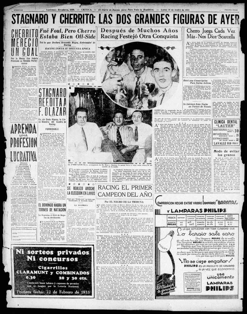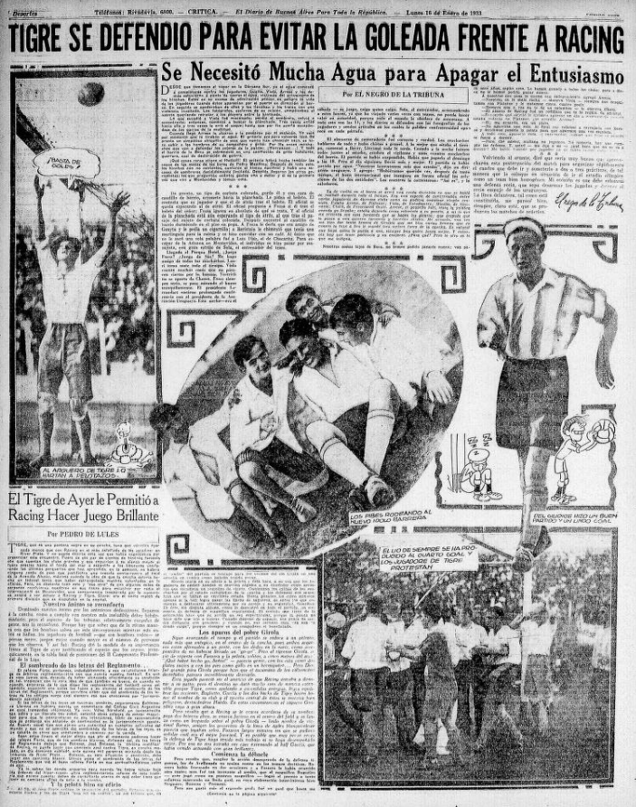 Finalmente el 29 de enero de 1933 se vieron las caras Racing y Boca, y el encuentro definía el título ya que Tigre había quedado sin chances. Se jugó en la cancha de Independiente. A los 12 minutos Evaristo Barrera elaboró una jugada con Vicente Del Giúdice y anotó el primero de la tarde. A los 34 aumentó Bugueyro y en el segundo tiempo, a los 76, Barrera puso cifras definitivas luego de ser asistido otra vez por Del Gíudice. Trinunfo 3 a 0 de la Academia y un nuevo título, el décimo de copas nacionales y el vigesimosegundo en total, no ganaba uno desde 1925.