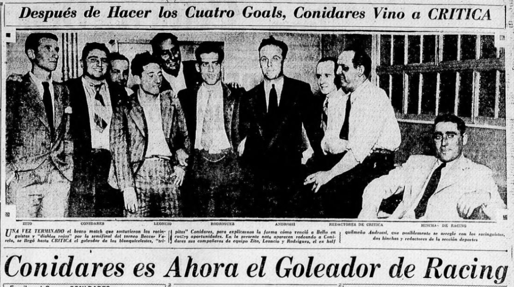1934- Copa Beccar Varela 1933. Semifinal. Desempate. Racing 4-1 Independiente. Póker de Demetrio Conidares, primero en lograrlo en un Clásico de Avellaneda. Debut de Marcial Máximo Rodríguez en Racing, llegó de Quilmes el 31-01-1934.