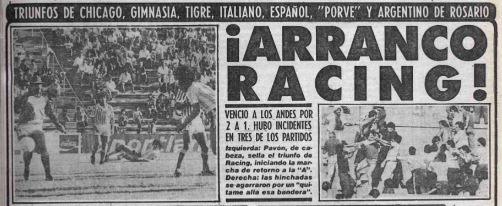 1984- PB. Fecha 1. Racing 2-1 Los Andes. Debut de Miguel Ángel Brindisi en la Academia, hizo un gol de penal. Debut y primer gol de Daniel Severiano Pavón, puso el 2-0 de cabeza a los 42′. Debut de Enrique Mario Belloni, ingresó a los 24′ por Veloso. Debut de José María Suárez y debut de Norberto Claudio Rotondi.
