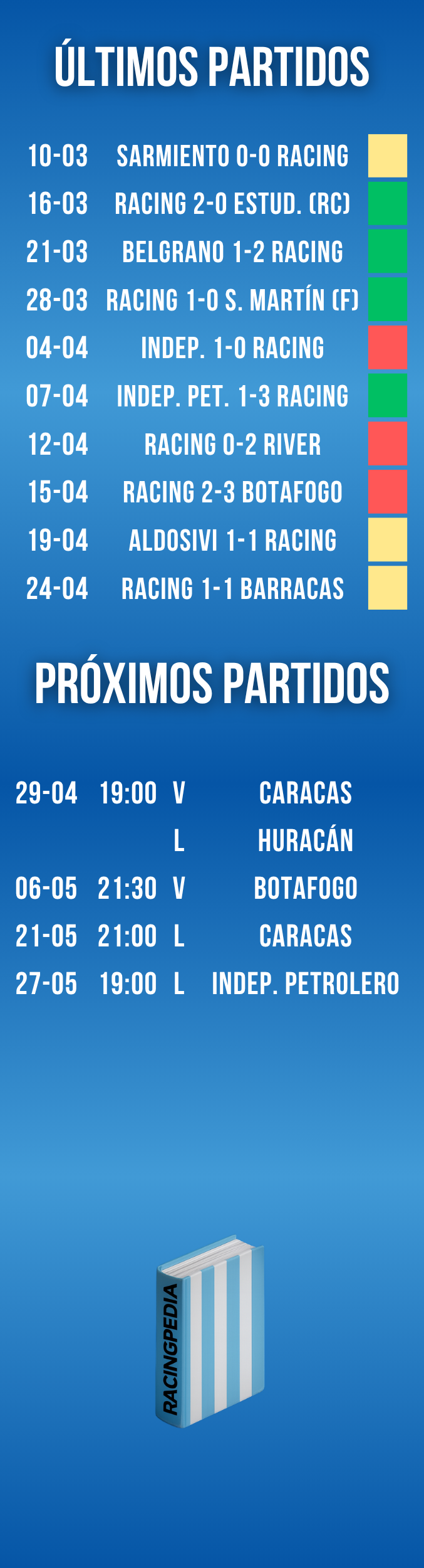 2024- Copa de La Liga. Fecha 9. Racing 0-1 Sarmiento. Esteno de camiseta alternativa negra y celeste.