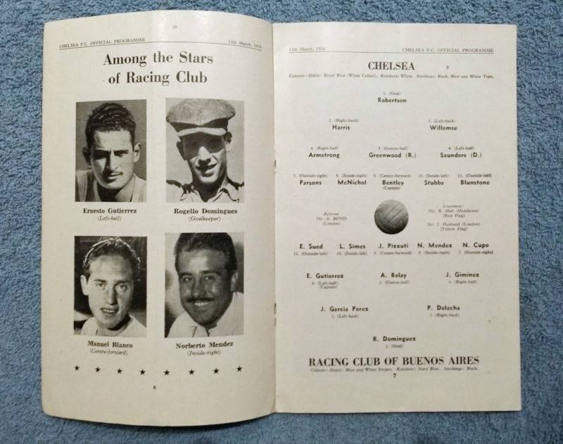 1954- Amistoso. En Londres. Chelsea 0-0 Racing.