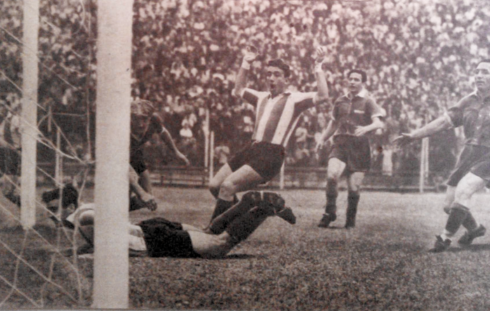 1934- PD. Fecha 3. Estudiantes LP 2-0 Racing. Debut de Ángel Chazarreta en Racing.